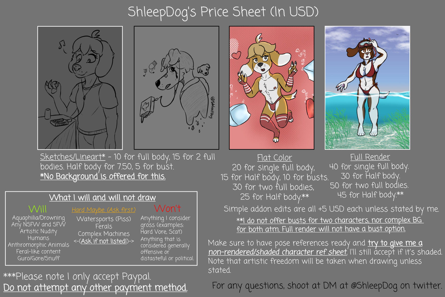 Hi, I'm ShleepDog. I'm a 2D/3D NSFW/SFW Artist and Musician. I also am the creator the Rain VN/Webcomic! You can check out some of my SFW art pieces below. Feel free to visit some of my socials! Discord server link is also below!Commission pricing is also located below!PSA: NSFW WARNING FOR ALL BUT KO-FI, AND RAIN WEBCOMIC + SFW ALT ACCOUNT